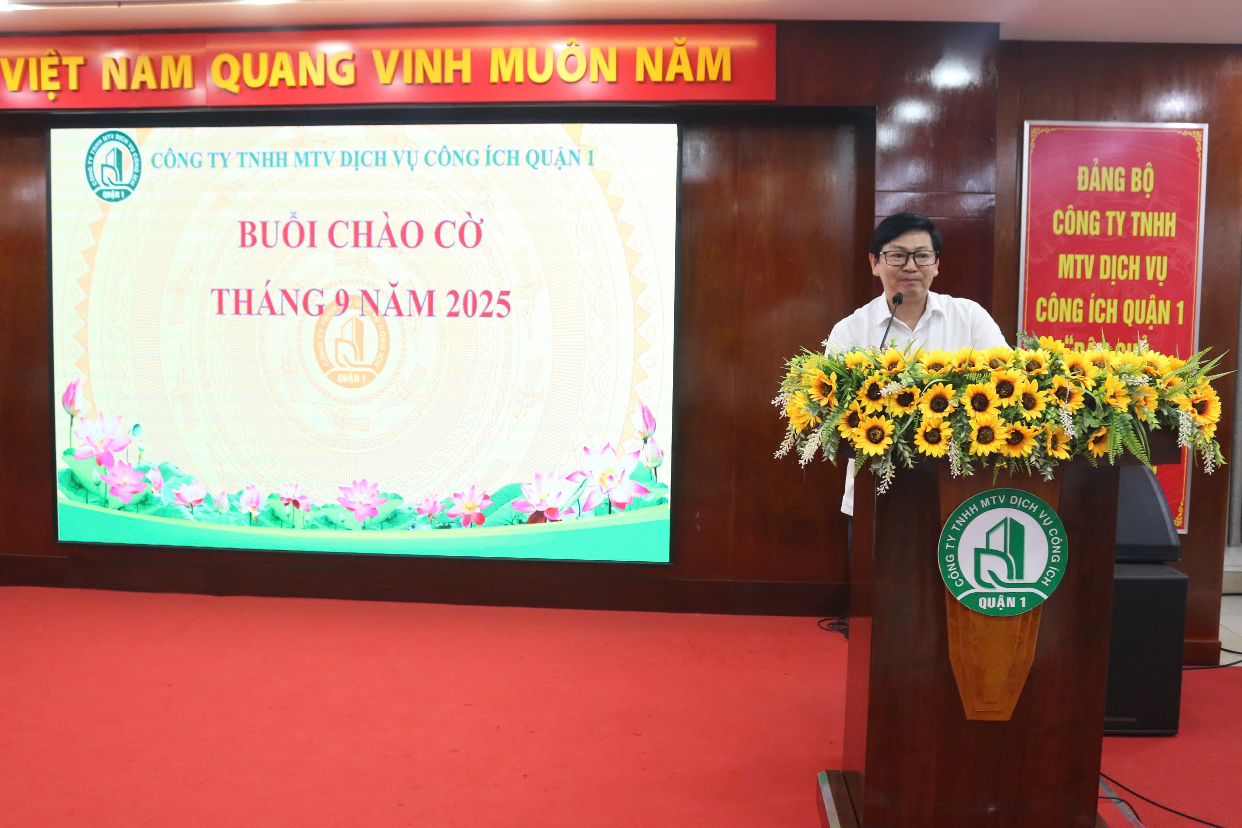 🪷 Sáng ngày 08/9/2025, tại Hội trường Công ty Dịch vụ công ích Quận 1 đã diễn ra Lễ chào cờ đầu tháng trong không khí trang trọng, phấn khởi với sự tham dự đầy đủ của Người quản lý, Trưởng, phó các đơn vị và nhân viên khối văn phòng. Ngay sau buổi lễ, đại diện Phòng Tổ chức hành chính – Lao động tiền lương kể mẩu chuyện về học tập và làm theo tấm gương đạo đức Hồ Chí Minh với chủ đề “Bác Hồ với công nhân lao động”, chủ đề gắn liền với Không gian văn hóa Hồ Chí Minh tại Công ty.