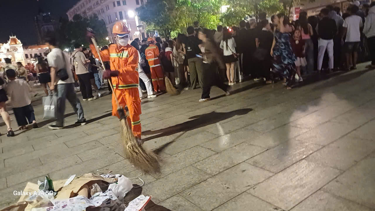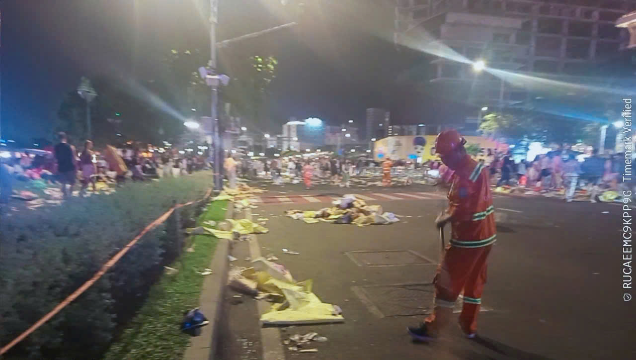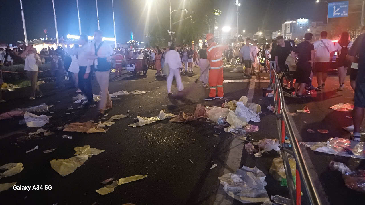 Công nhân vệ sinh môi trường của Công ty nỗ lực làm việc xuyên đêm sau sự kiện