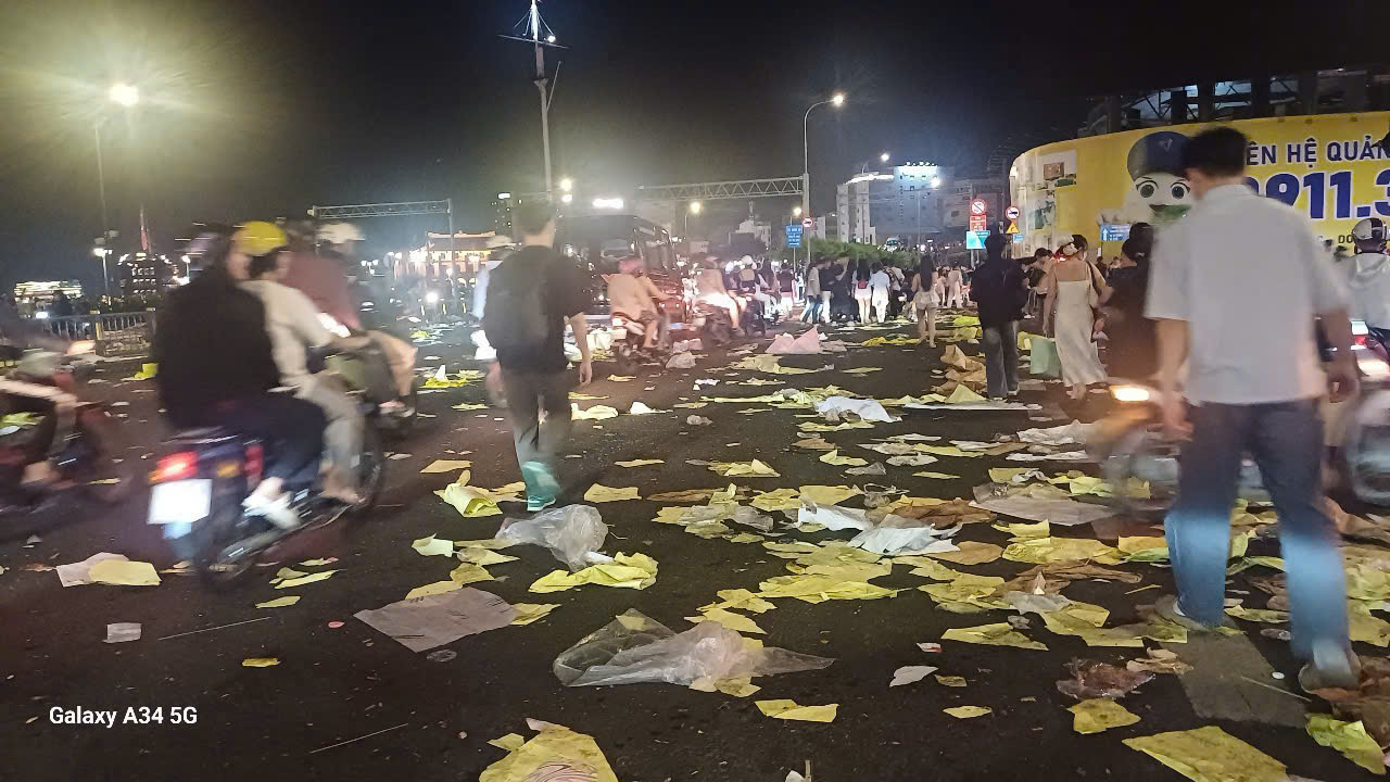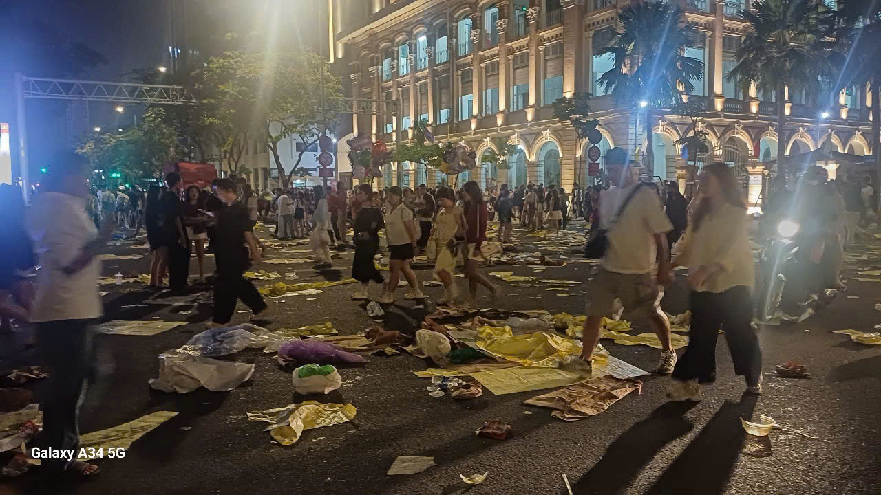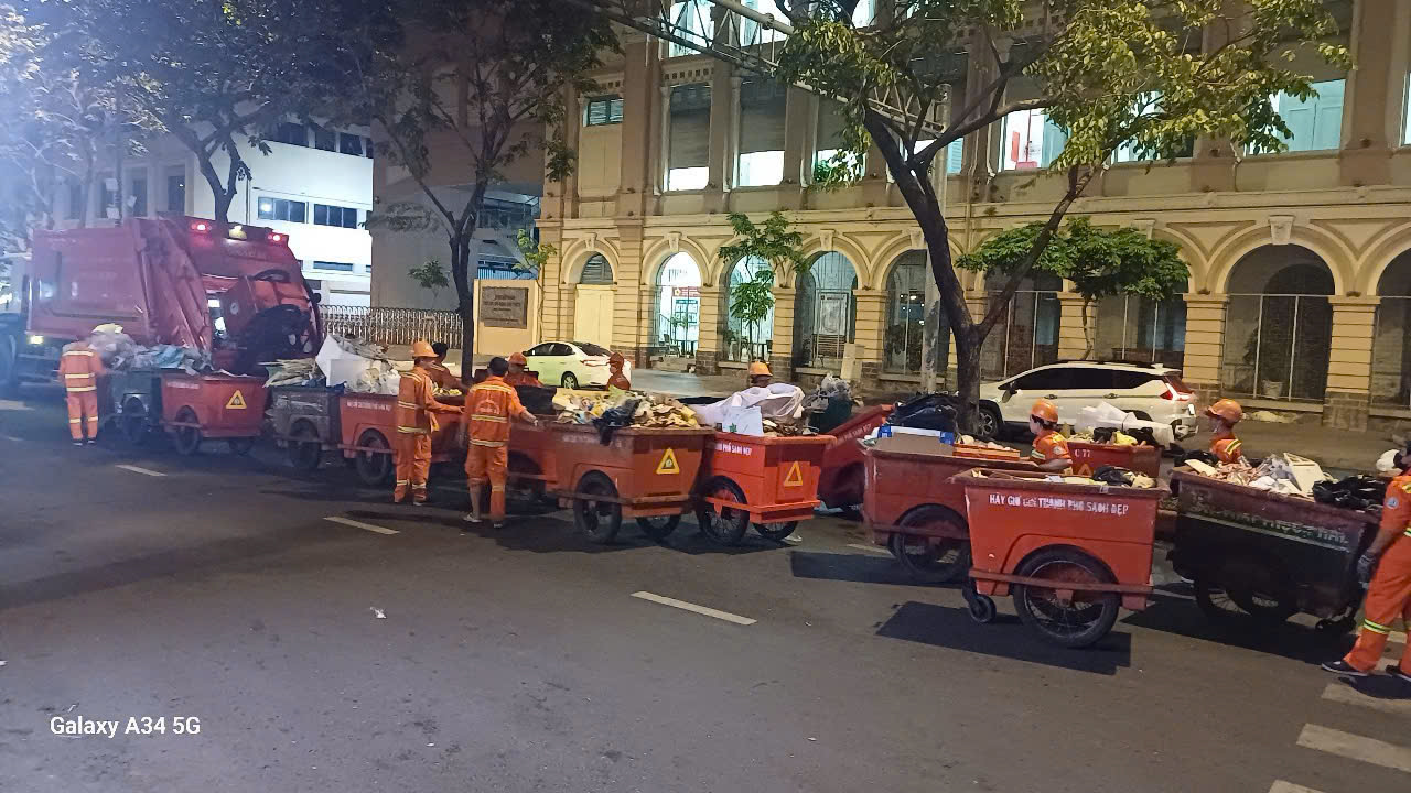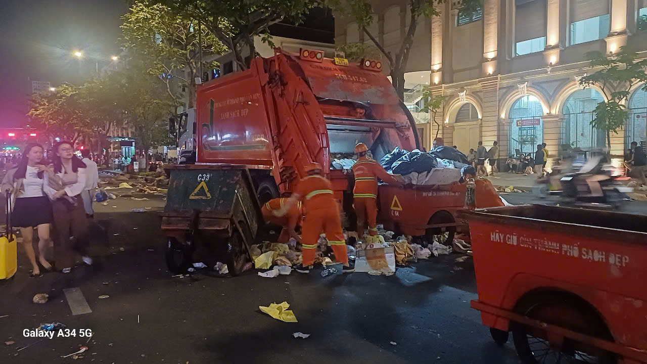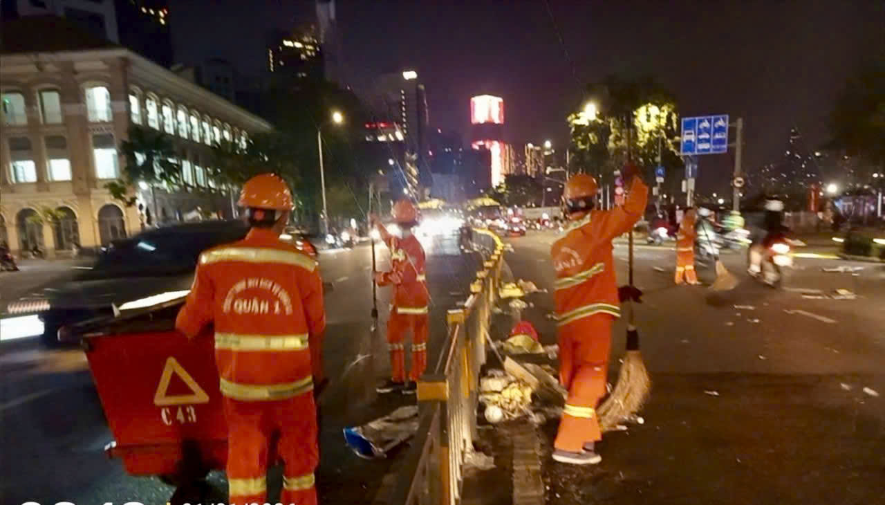 🌙Ngay sau màn pháo hoa rực rỡ, “cảnh tượng quen thuộc” được diễn ra, rác, túi nhựa, bao ny lông ngổn ngang khắp nơi trên các tuyến đường trung tâm Thành phố (đặc biệt là tại phố đi bộ Nguyễn Huệ, Tôn Đức Thắng, Lê Lợi…). Khi mọi người chuẩn bị ra về sau cuộc vui là lúc công nhân vệ sinh môi trường của Công ty tất bật, vất vả, nỗ lực, cần mẫn dọn dẹp, quét dọn, thu gom vận chuyển rác xuyên đêm, quyết tâm không để tồn đọng rác, sớm trả lại vẻ mỹ quan cho Thành phố trong ngày đầu tiên của năm mới.