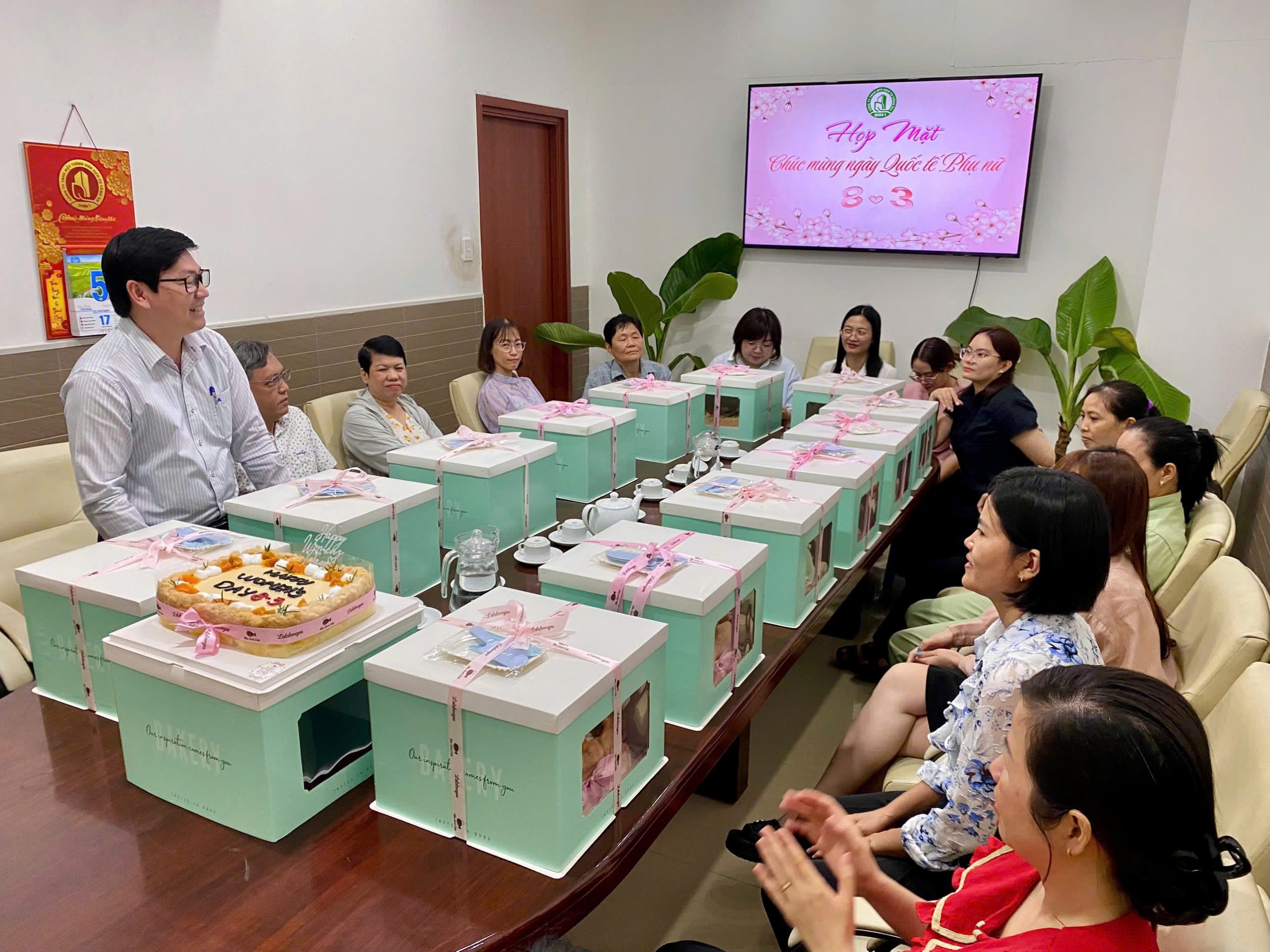🌸Nhân dịp này, Ban Giám đốc Công ty phối hợp cùng Công đoàn cơ sở trao tặng 158 phần quà đến các chị em, với tổng kinh phí gần 130 triệu đồng cùng những chiếc bánh kem ngọt ngào như lời chúc ý nghĩa nhất đến tất cả những bông hoa đẹp của Công ty Dịch vụ công ích Quận 1.