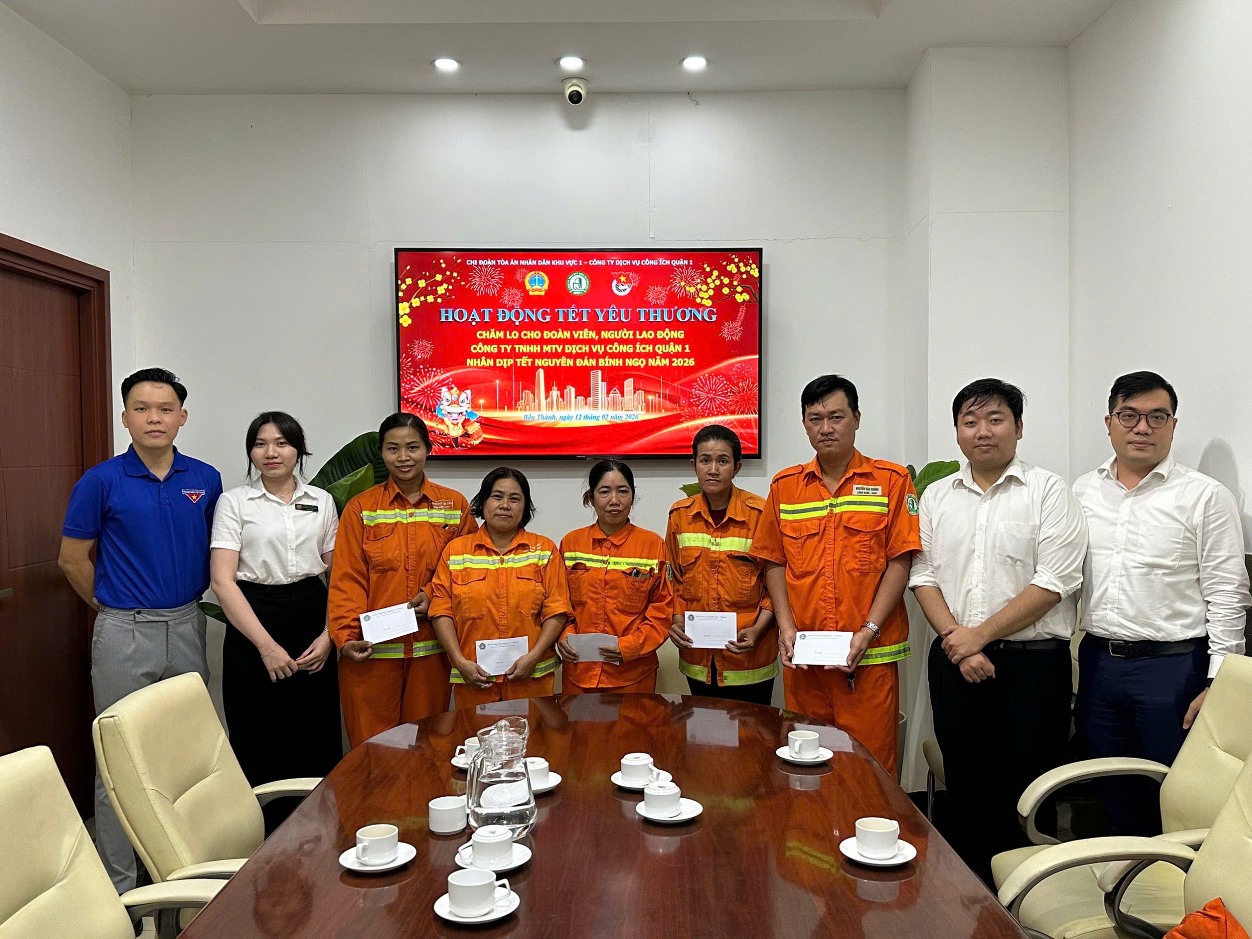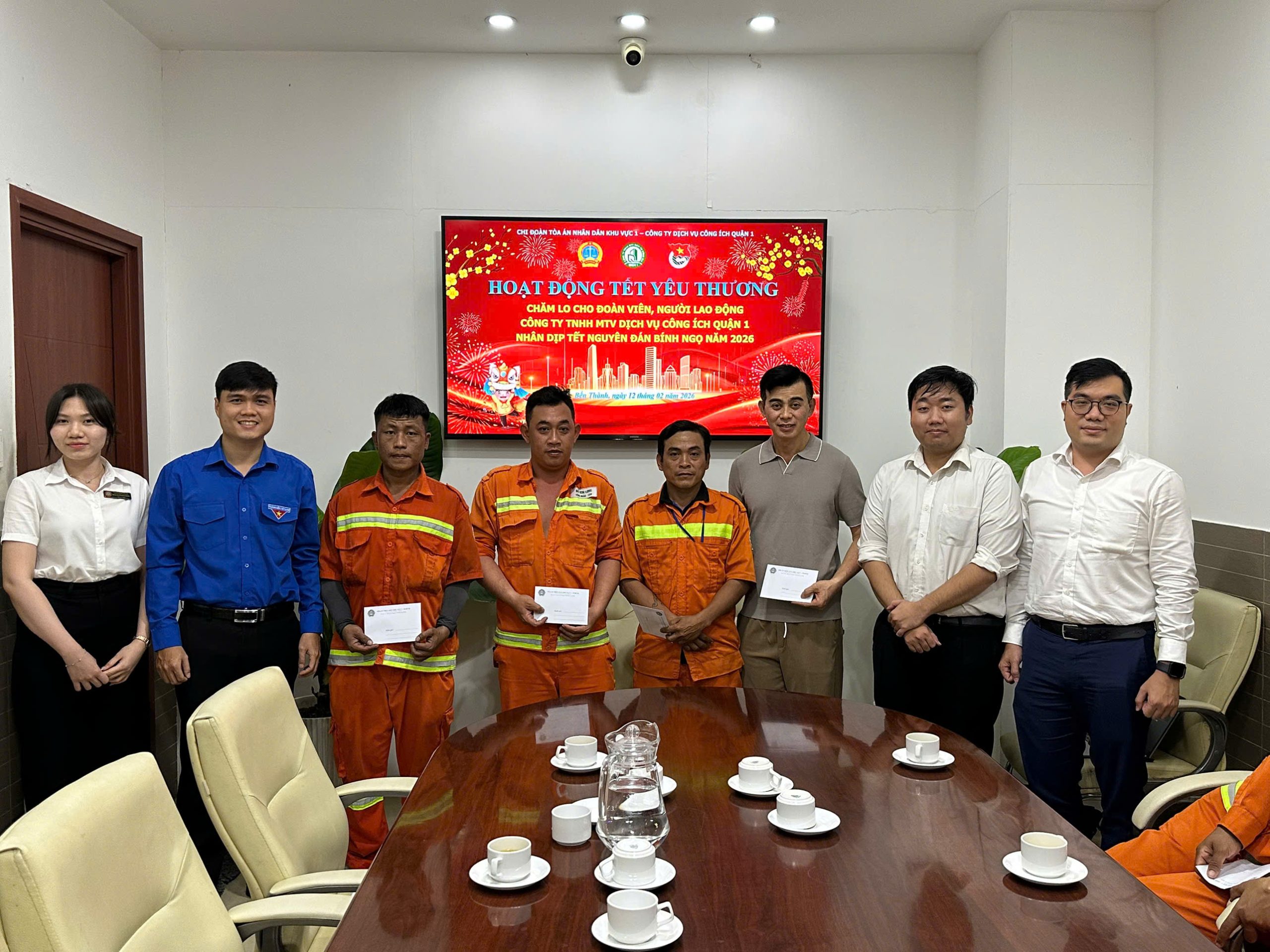 💞Ngày 11 và 12/02/2026, Đoàn Thanh niên Công ty Dịch vụ công ích Quận 1 đã phối hợp cùng các đơn vị Đoàn phường Tân Định, Chi Đoàn Thanh niên Công an phường Bến Thành, Chi đoàn Tòa án nhân dân khu vực 1 tổ chức hoạt động chăm lo, thăm hỏi và tặng quà động viên đội ngũ công nhân môi trường đang ngày đêm làm nhiệm vụ giữ gìn vệ sinh đô thị trên địa bàn.