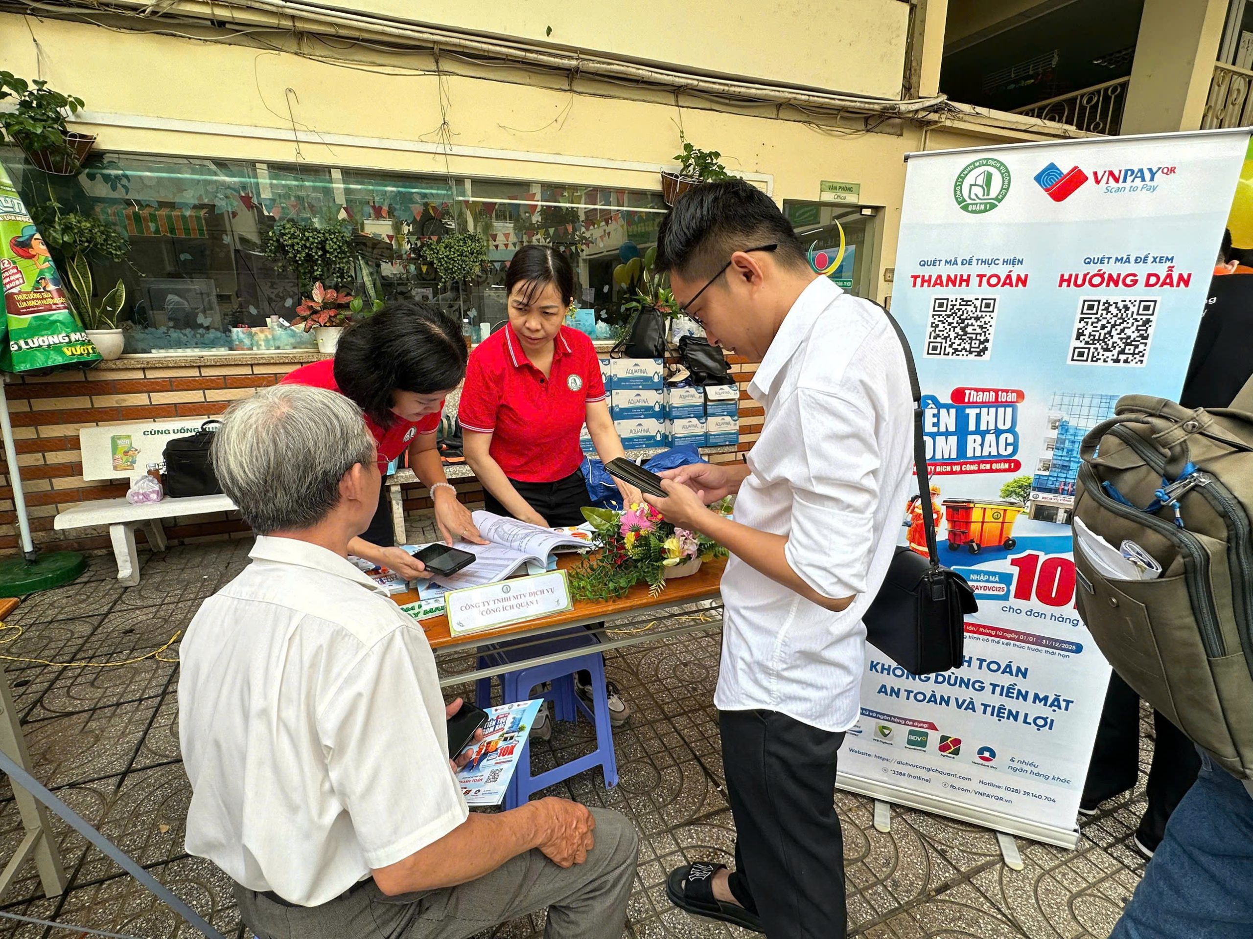 🥰 Tại Ngày hội, Công ty tham gia gian hàng công nghệ số nhằm đẩy mạnh tuyên truyền và vận động Quý khách hàng, Nhân dân và các tổ chức, doanh nghiệp trên địa bàn phường Bến Thành về lợi ích của việc thực hiện thanh toán không dùng tiền mặt và an toàn, tiện lợi khi thanh toán trực tuyến tiền thu gom rác cùng Công ty Dịch vụ công ích Quận 1.